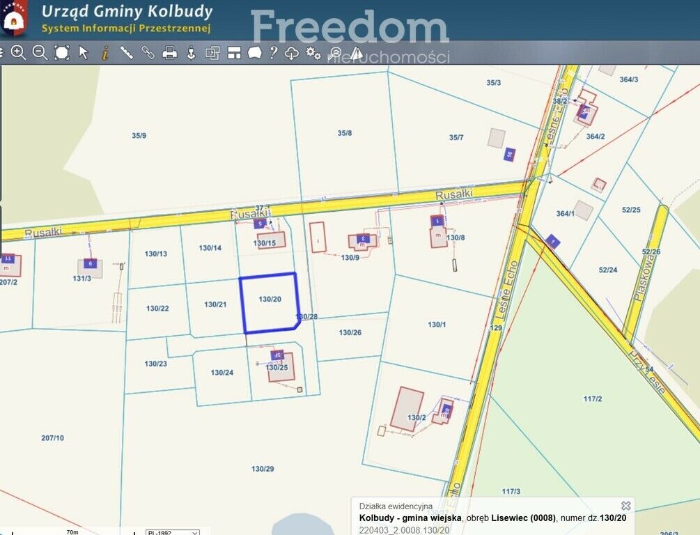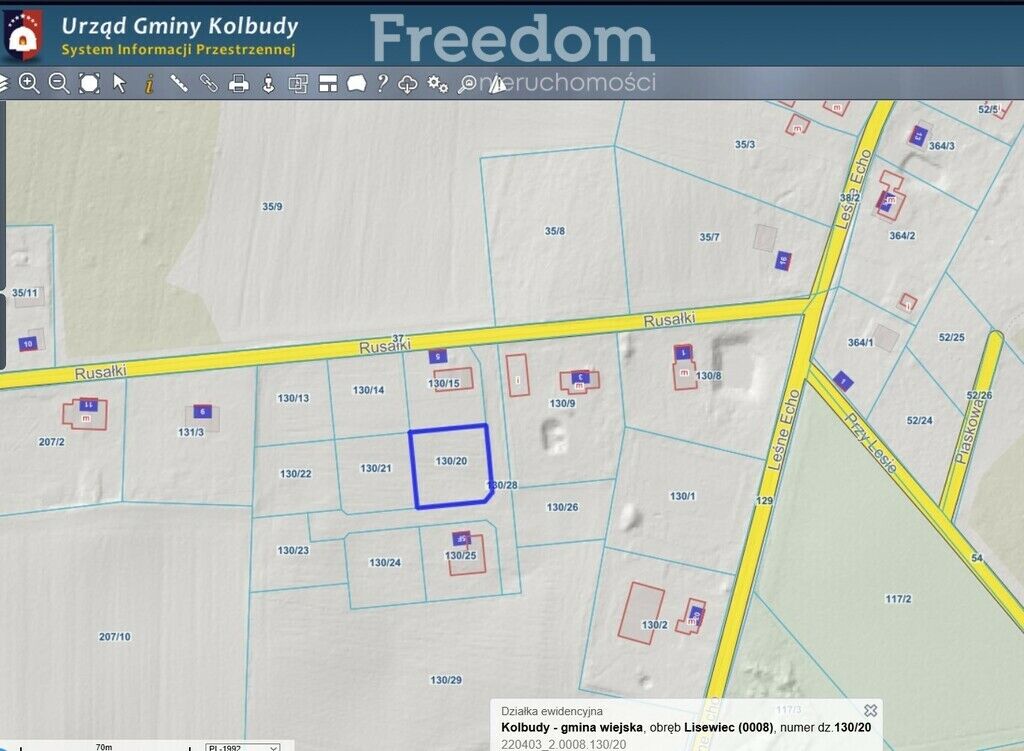 - działka nr ewidencyjny 130/20 – powierzchnia 1 011 m2, obręb
